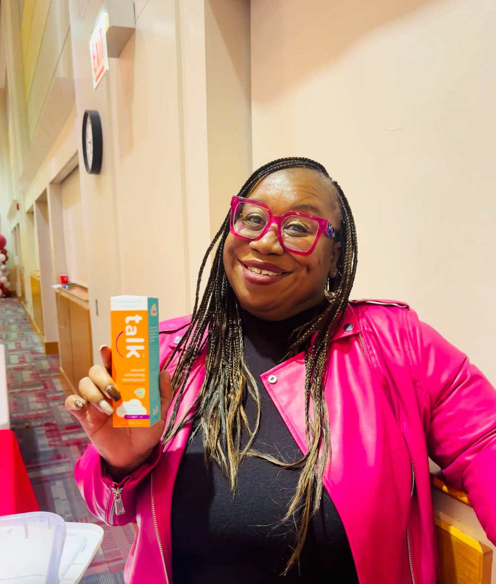 As a mom and engineer, our founder wanted a gentle solution for her concerns about gum health—especially after trying non-nicotine products during the pandemic due to stress. When she couldn’t find a fluroide-free toothpaste that left no grittiness, reduced sensitivity, no bad after taste, and gentle for her autistic daughter to use she created one herself. Talk toothpaste was then born.